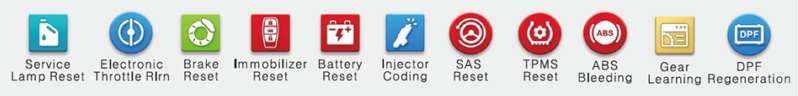 - Service functions reset– service light, oil light reset light, Electric Park Brake, injectors etc.